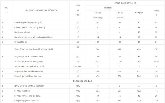 Như vậy với thời gian khoảng 588 giờ như vậy sẽ tương đương là 3 tháng đào tạo đối với hạng B2.