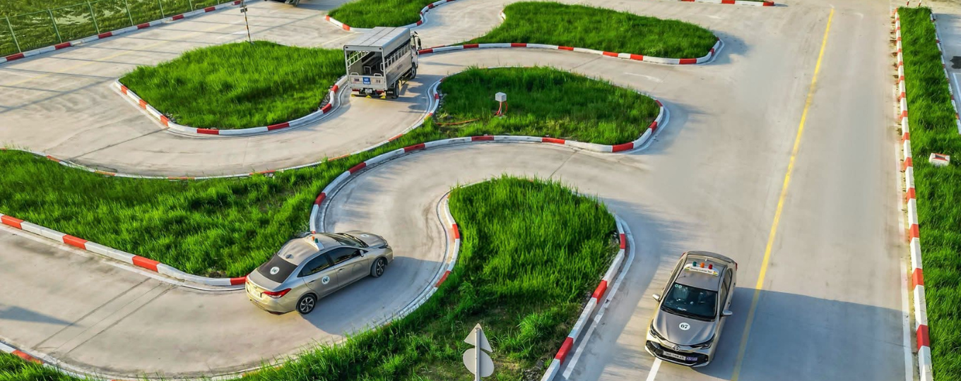 Sân sát hạch đạt chuẩn: Hệ thống sân bãi rộng rãi, được lắp đặt thiết bị cảm biến hiện đại theo tiêu chuẩn quốc gia, giúp học viên làm quen với áp lực thi cử và thao tác chính xác.